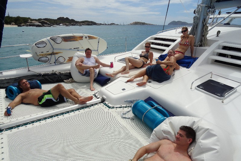 With acres of deck space and the large trampolines up forward, guests have many areas to roam and relax. The unobstructed aft swimming platform on the Leopard 47 is second to none for space and fun.