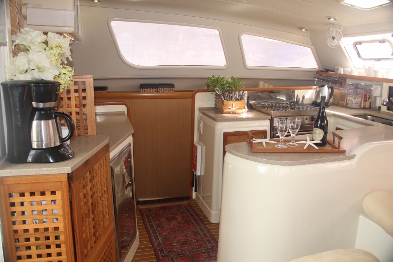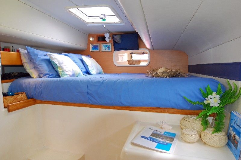 Catamarans provide far more space above and below decks than monohulls of similar length. Add to this the advantage of an all around view from the bridge deck salon, full headroom throughout and the catamaran generally has a lighter more spacious feeling, along with its exceptional stability.